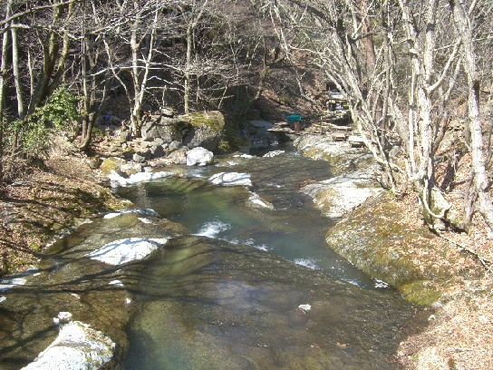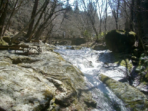 車を出発点と帰着点において、出発点から林道を歩いて下り、甘湯新湯へ。