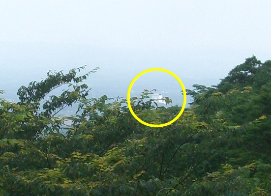 右手には民宿南月が見え、窓の正面に山が見え、おぉ!そこには「いこいの家」(閉館)が見えます。