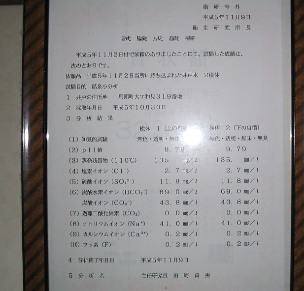 (那珂川温泉旅館の分析書は昭和62年と古いので、元湯東家の女湯の分析書を記載)。