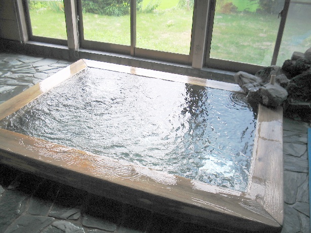 湧出量少なく泉温が低いので、大きな湯舟だと加温と湯量確保が大変でしょう。