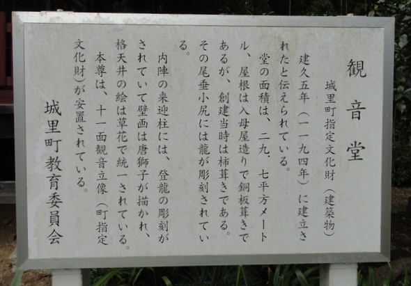 城里町の寺伝に従った説明板によると、平貞能は1182年にこの地を訪れたとありますが、貞能は1181年から1183年までは、九州鎮圧中のはずです。