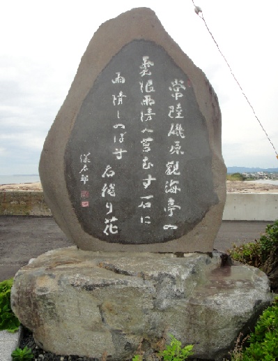 「常陸磯原観海亭の 雲恨雨情の苔むす石に 雨情しのばす 名残り花」漾太郎(磯原雨情会
