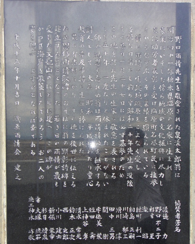 協賛者に「渡邊力」(磯原雨情会会長)、野口雨情のお孫さん「野口不二子」さんのお名前も刻まれています。