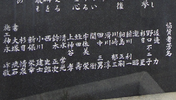 雨情墓地の指導標の建設費の寄付者芳名が、としまや駐車場に置かれている「烈公詠碑」の裏面に記されています。