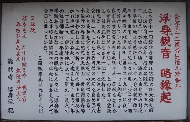 霊験あらたかな、この観音を人々は「浮身観音」と尊称し近隣講中の信心にささえられて今日に至っている。