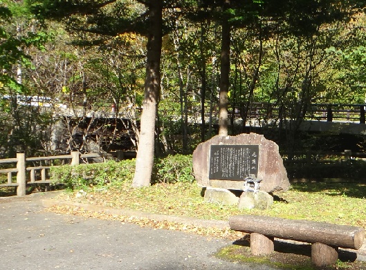 女将さん「何度も流されたので、もう橋はかけないことにしたのよ、立派な碑を作ったんだけどねぇ」