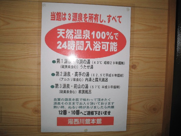 以前は「打たせ湯・檜風呂」に「湯西川館源泉」が使用されていましたが、