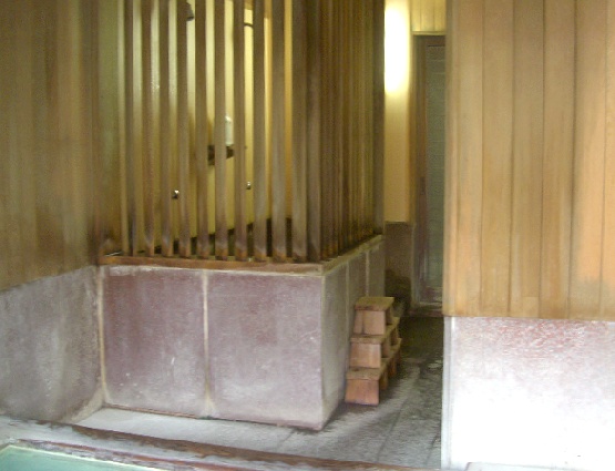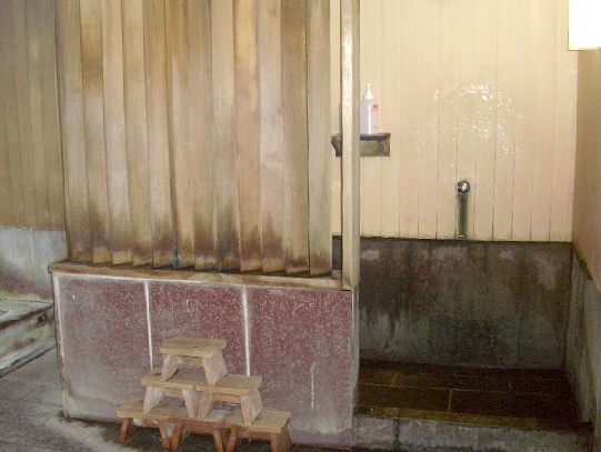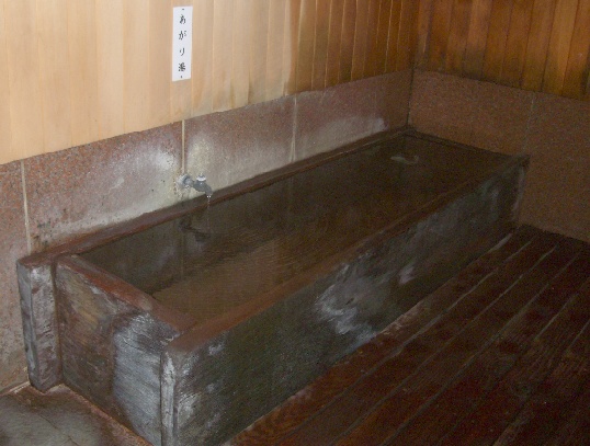 鹿の湯源泉を加水せずに提供するため、内湯はため湯槽を使用し、浴用湯船に湯を流し込んでいます。