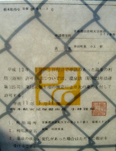源泉名「鹿沼温泉(仮称やすらぎの湯)」