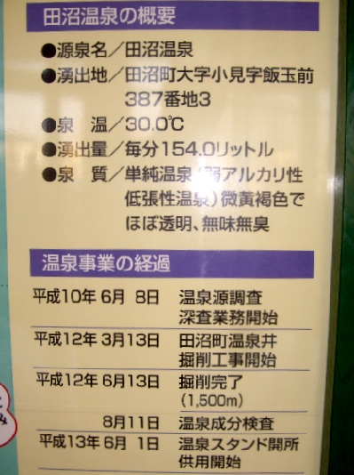 平成16(2004)年に温泉が湧出し、平成18(2006)年に温泉スタンドができるも、