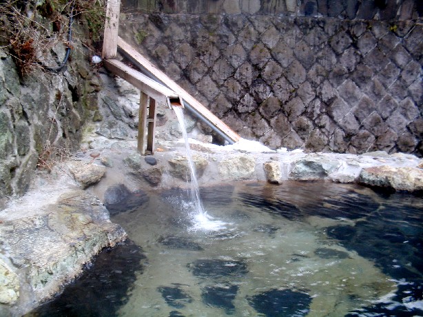 湯口では金気臭がします。湯口からの湯量と同量がオーバーフローしていきます。