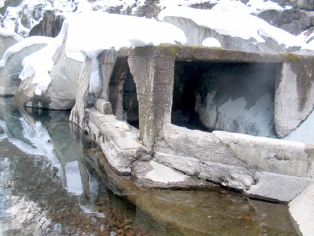 「石間の湯」「河原の湯」として使わてきた湯が、「湯守田中屋」に継承されています。