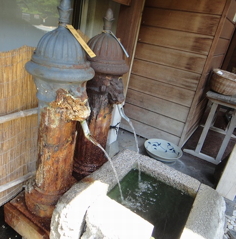 源泉「大網4号」。龍頭を活用した、飲泉所・足湯です。足を入れるには小さいです。