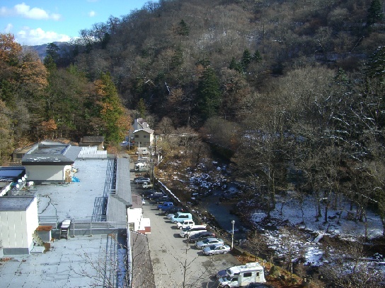 大出館は高台にあるので、眼下に、「えびすや」、「元泉館」、「赤川」も見えます。
