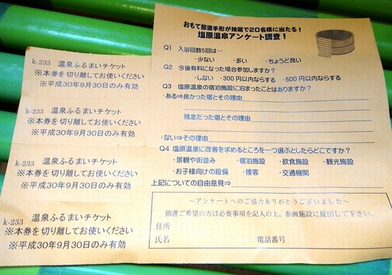 温泉ふるまい参加チケットをもらいました。