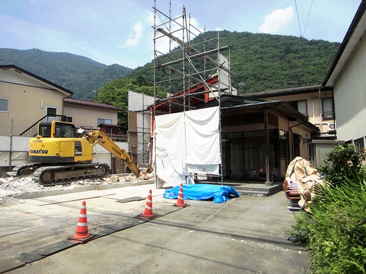 解体工事終わったら、旅館部分のみ解体で自宅部分は残っています。