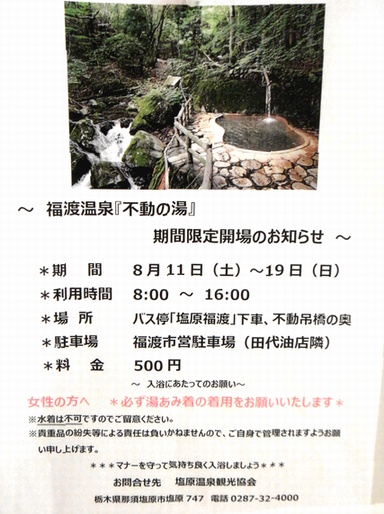 予約(前日17:00まで)塩原温泉観光協会 0287-32-4000