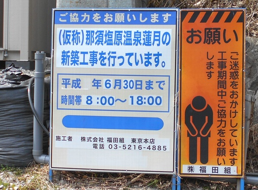 更地に、新しく温泉旅館を新設中なのが、塩の湯の「那須塩原温泉蓮月」(仮称)。